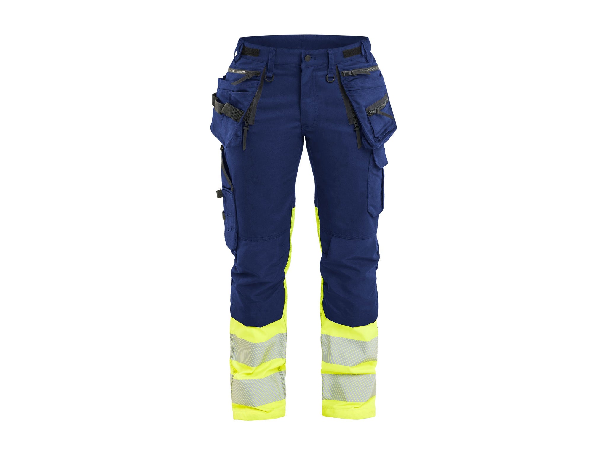 · Durable hi-vis Work Trousers in two-way stretch/CORDURA® denim with a women's fit and tapered legs, ideal for jobs that require function and good mobility.